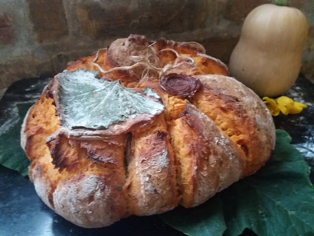 Stavila sam bundevu od testa u pleh za pečenje, napravila dršku i listove. Listove od testa premazala sam sa vodom i prilepila sam dva prava lista od bundeve. Ostavila sam testo 30 minuta da odmara a onda stavila u rernu na 200 stepeni na nekih 50-ak minuta da se peče. Kada je testo pečeno, ostavite ga da se malo prohladi i pažljivo skinite kanap.